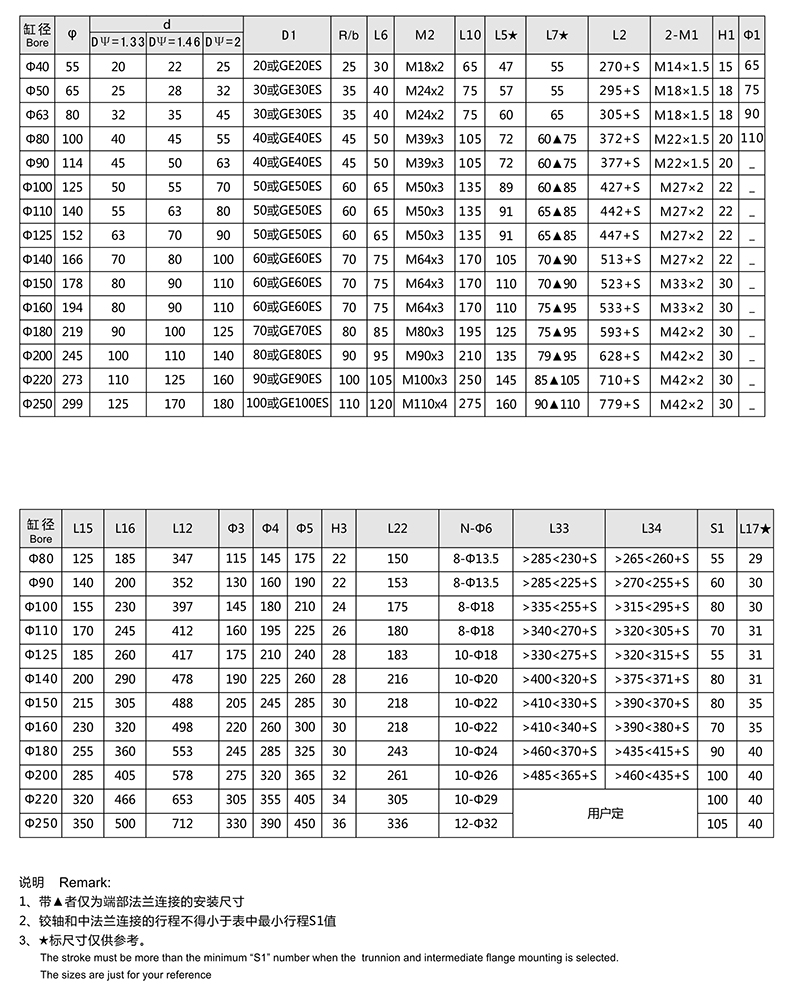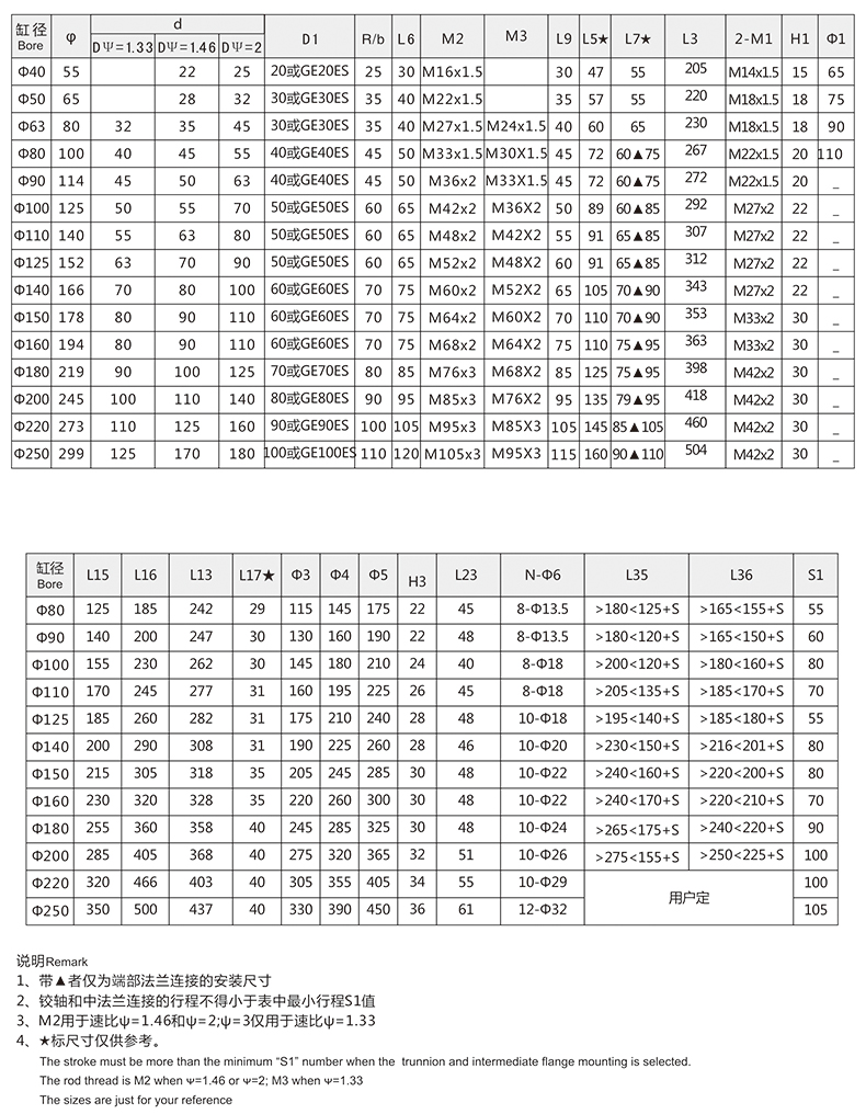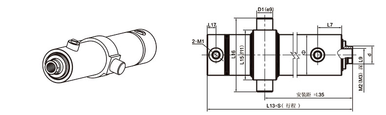 活塞桿端為內(nèi)螺紋桿頭耳環(huán)連接