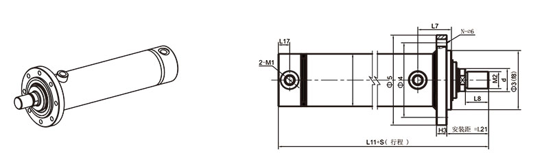 活塞桿端為內(nèi)螺紋桿頭耳環(huán)連接