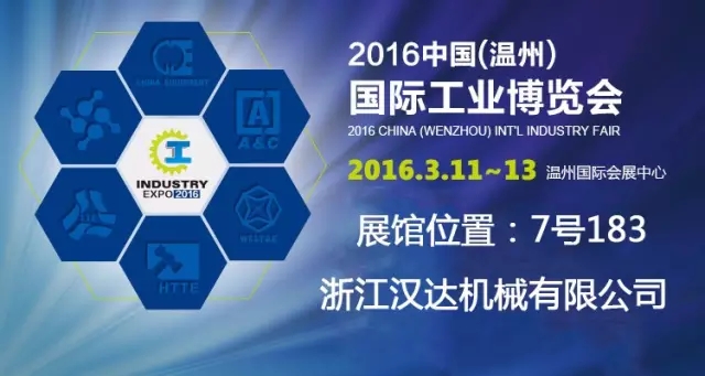 2016月3月11日至13日,浙江漢達參加2016中國(溫州)國際工業(yè)博覽會,屆時將展出油缸和液壓閥。