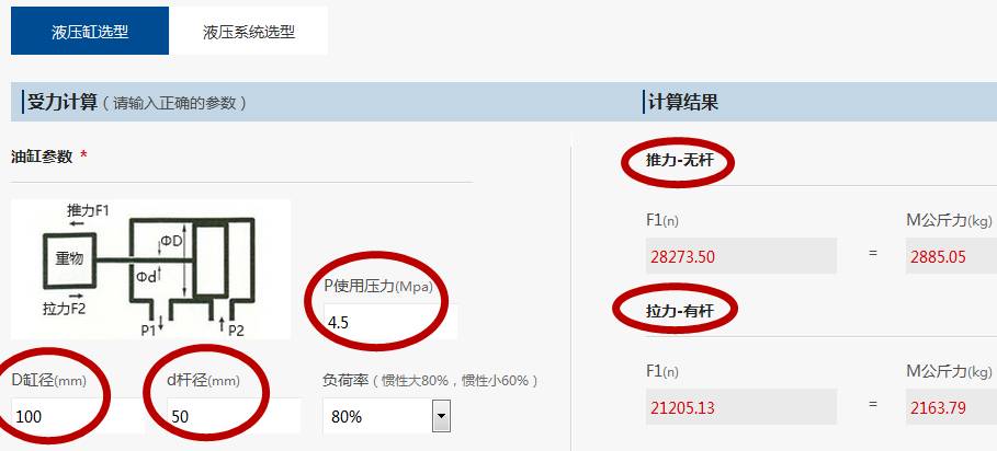 使用壓力、桿徑等參數(shù)