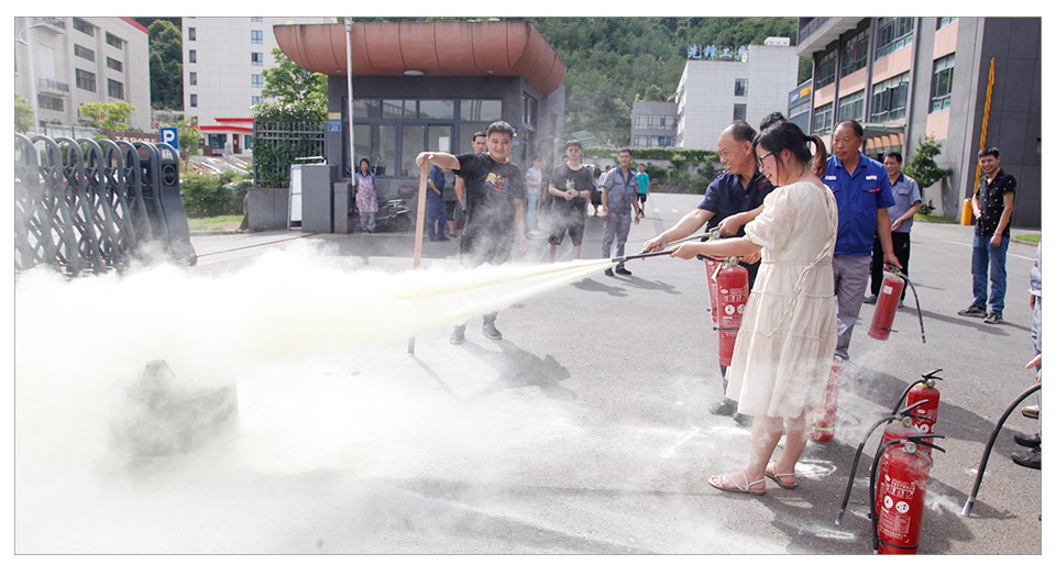 逃生演習(xí)結(jié)束后,安全員應(yīng)國(guó)堅(jiān)向員工們?cè)敿?xì)講解了滅火器的使用方法,并點(diǎn)燃了提前準(zhǔn)備好的木材。特殊崗位、門(mén)衛(wèi)及車(chē)間、辦公室部分員工參與了滅火實(shí)戰(zhàn)。